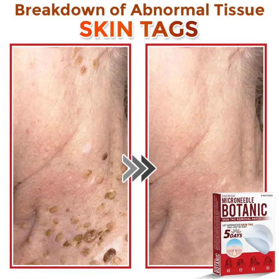 The Fivfivgo® MicroNeedle Botanic Skin Tag Removal Patch is an organic micro-needle patch that delivers botanical ingredients deep into the skin to remove skin tags, moles, and warts. Just one application can cause unwanted skin tags to fall off within five days, making it an effective treatment. It is highly recommended by pharmacists and dermatologists worldwide for its safety, reliability, and non-prescription convenience.