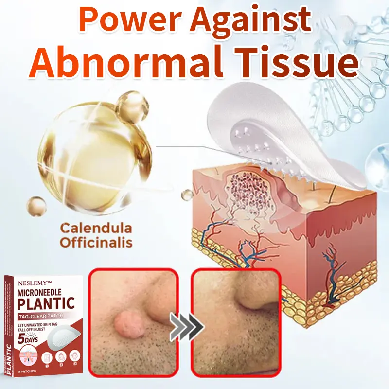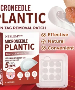 The NESLEMY® MicroNeedle Plantic Tag-Clear Patch is an organic micro-needle patch that delivers Plantic ingredients deep into the skin to remove skin tags, moles, and warts. Just one application can cause unwanted skin tags to fall off within five days, making it an effective treatment. It is highly recommended by pharmacists and dermatologists worldwide for its safety, reliability, and non-prescription convenience.