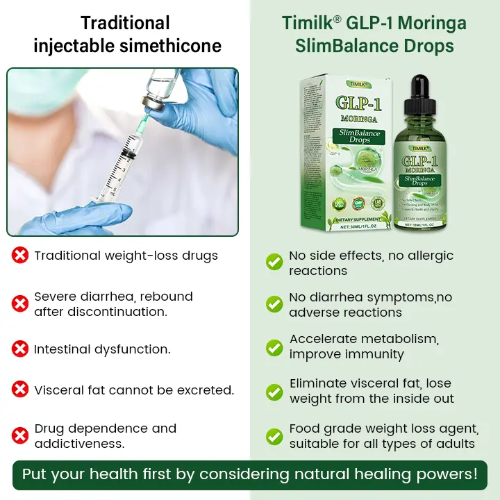 Timilk® GLP-1 Moringa SlimBalance Drops were developed by The Obesity Society after years of research and deep expertise in weight loss and obesity management. This advanced formula is designed to help users lose weight effectively, enhance overall health, and support balanced metabolism. Combining GLP-1 technology with the powerful benefits of moringa, the drops promote healthy fat loss, improve well-being, and help regulate blood sugar, offering a comprehensive solution for metabolic health.