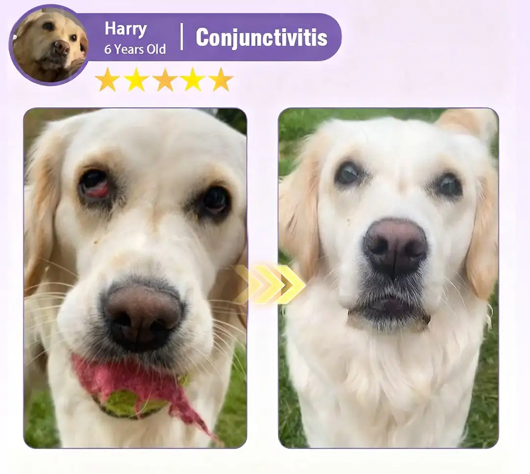 “Let me tell you, my dog Harry is six years old and his eyes got really swollen and red—his vision was even affected. The meds didn’t do a thing. But I started putting one drop of this eye solution in every night, and after about a week the swelling went down, the redness eased up, and there was way less discharge. Harry finally stopped pawing at his eyes all the time.