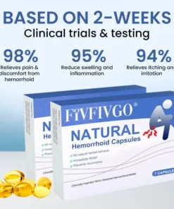 In a 2-week clinical study conducted with 120 participants suffering from varying degrees of hemorrhoids, daily supplementation with Fivfivgo® Natural Hemorrhoid Capsules resulted in significant symptom improvement. By the end of the trial, 98% of participants reported reduced swelling and inflammation, 95% experienced relief from pain and itching, and 94% observed reduced bleeding and improved bowel movements. No adverse side effects were reported, and the majority of users noted increased comfort during daily activities.