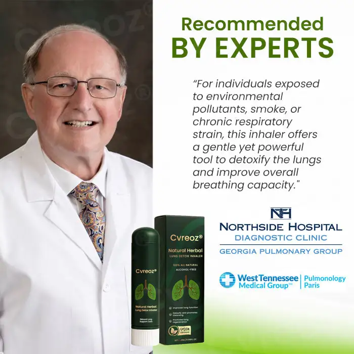 Leading experts in respiratory care recommend Cvreoz® due to its significant positive impact on lung health and detoxification. A consortium of renowned doctors and specialists from esteemed American associations have recognized the inhaler’s potential in alleviating respiratory issues naturally, lending their unwavering endorsement to its use.