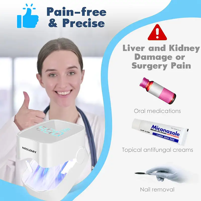 “As a medical professional, I find the NESLEMY Nail Fungus Cleaning Light Device to be a superior option compared to traditional treatments. Unlike oral medications, which can have systemic side effects, or topical creams that take time to show results, this light therapy directly targets the infection at its source without any harsh chemicals or invasive procedures. It’s a non-invasive, pain-free, and effective alternative for patients dealing with persistent nail fungus. The results are quick, and it’s incredibly easy to use—making it a great option for anyone looking to improve their nail health.”–Dr. Natasha Braush