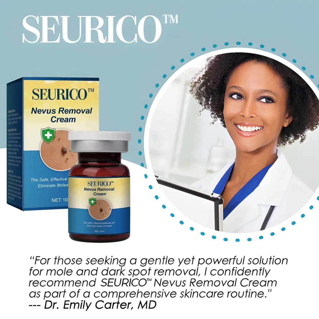 “As a dermatologist with over 15 years of experience specializing in skin disorders and cosmetic dermatology, I am highly impressed by the formulation of Seurico™ Nevus Removal Cream. The carefully selected natural ingredients, such as White Fresh Bark, Sophora Japonica Root, and Saffron, work synergistically to target unwanted nevi, dark spots, and blemishes safely and effectively.