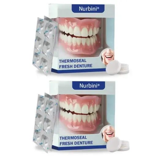Nurbini® Thermal Seal is the first -approved thermo-adaptive denture, clinically proven to eliminate denture issues at home with a 99.3% success rate. With its innovative thermal seal technology, it gently warms to your body temperature in minutes, perfectly conforming to your unique oral contours. The revolutionary self-hydrating adhesive base actually becomes stronger with each use—creating an unbreakable seal and eliminating the need for messy adhesives forever.