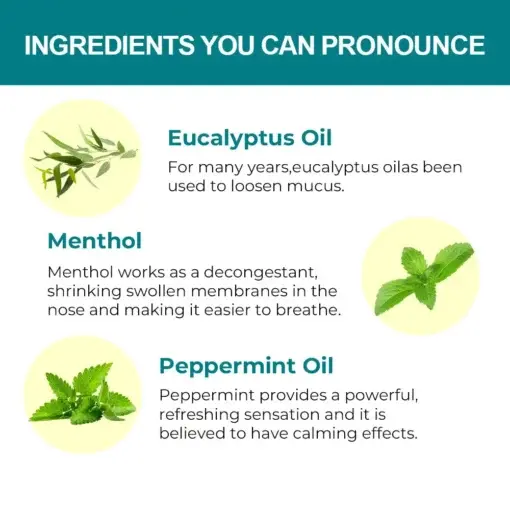 Oveallgo™ BoomBreathe uses a powerful blend of natural essential oils like peppermint, eucalyptus, and menthol to open airways and provide quick relief from nasal congestion, making breathing effortless.
