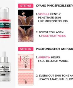 Minimizes pores and fades blemish marks in just 2 weeks! This duo includes Cyano Pink Spicule Serum and Picotonic Shot Ampoule. Perfect for achieving a radiant glow.