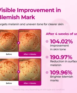 – Containg patented ingredients to inhibit melanin production.