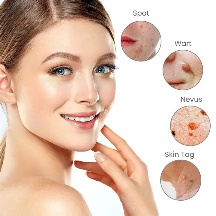 - Removal of moles, freckles, dark spots, skin tags, and blemishes.