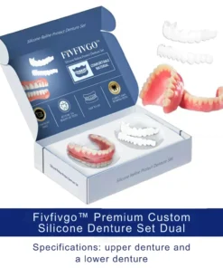 The Fivfivgo™ Premium Custom Silicone Denture Set Dual provides an exceptional alternative to traditional dental implants, offering convenience and affordability. Priced at just $39.99, this innovative solution allows you to restore your smile and improve chewing function without enduring the high costs and long treatment times associated with dental implants, which can run into tens of thousands of dollars. Choose Fivfivgo™ for a cost-effective, easy-to-use option that helps ou achieve a confident, beautiful smile—quickly and affordably.