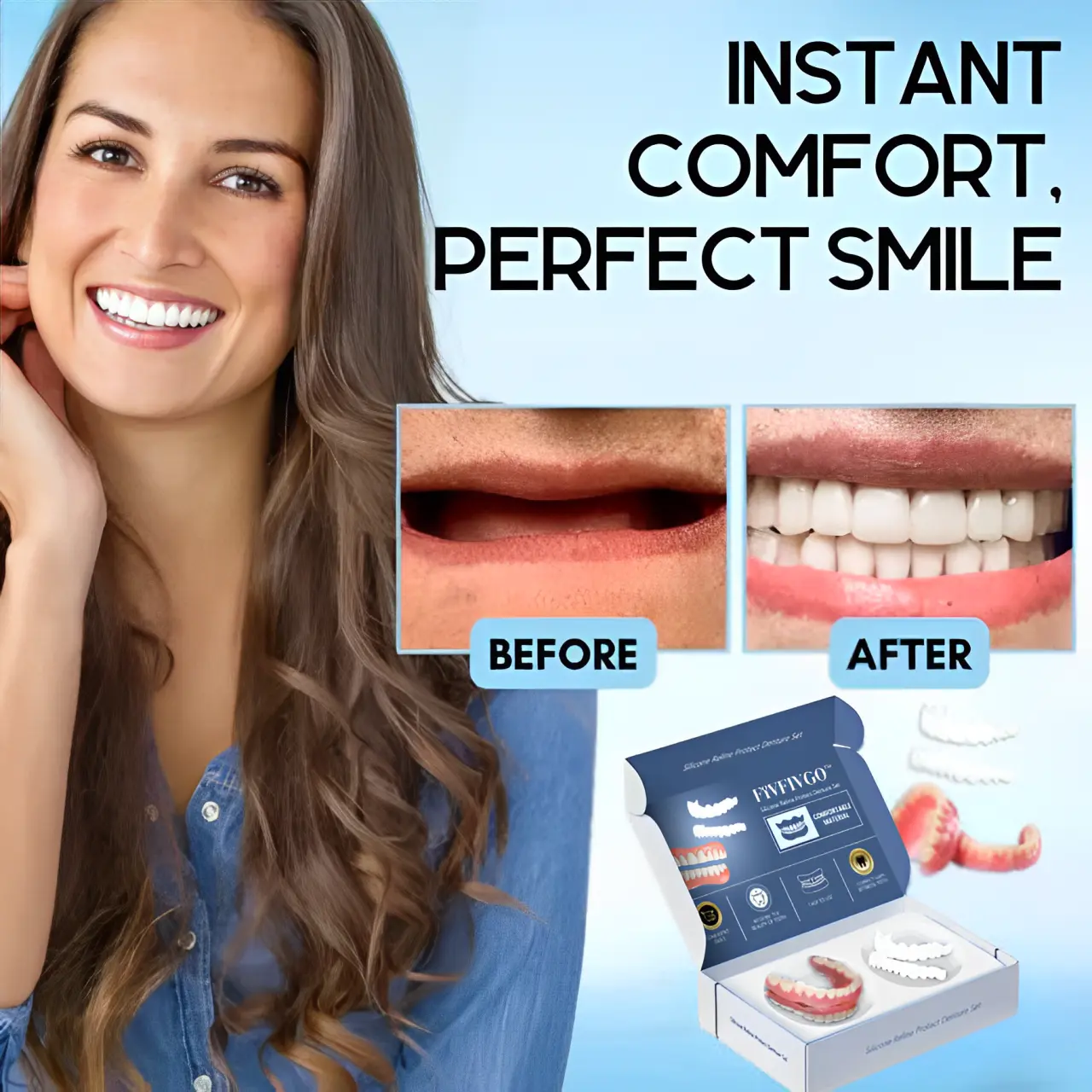Achieve a Flawless Smile Instantly: Transform your appearance in moments with the Fivfivgo™ Silicone Denture Set and unlock the beauty of a radiant, natural-looking smile. Designed with aesthetics in mind, our dentures mimic the look of real teeth, blending seamlessly with your features for a flawless, polished appearance. Experience unparalleled comfort with a snug, irritation-free fit that boosts your confidence every time you smile. Whether you’re speaking, laughing, or posing for photos, the Fivfivgo™ Denture Set ensures you always look your best, offering the ultimate in dental beauty and comfort.