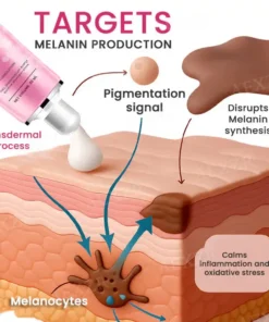 Dobshow® Private Pink Recovery Cream works by targeting the biological signaling pathways that regulate melanin production in the skin. Instead of merely exfoliating or bleaching the surface, the cream penetrates into the deeper layers of the epidermis where pigmentation begins. It acts on the communication between melanocytes (pigment-producing cells) and hormones that stimulate melanin synthesis—disrupting the signal that tells the skin to darken in specific areas.