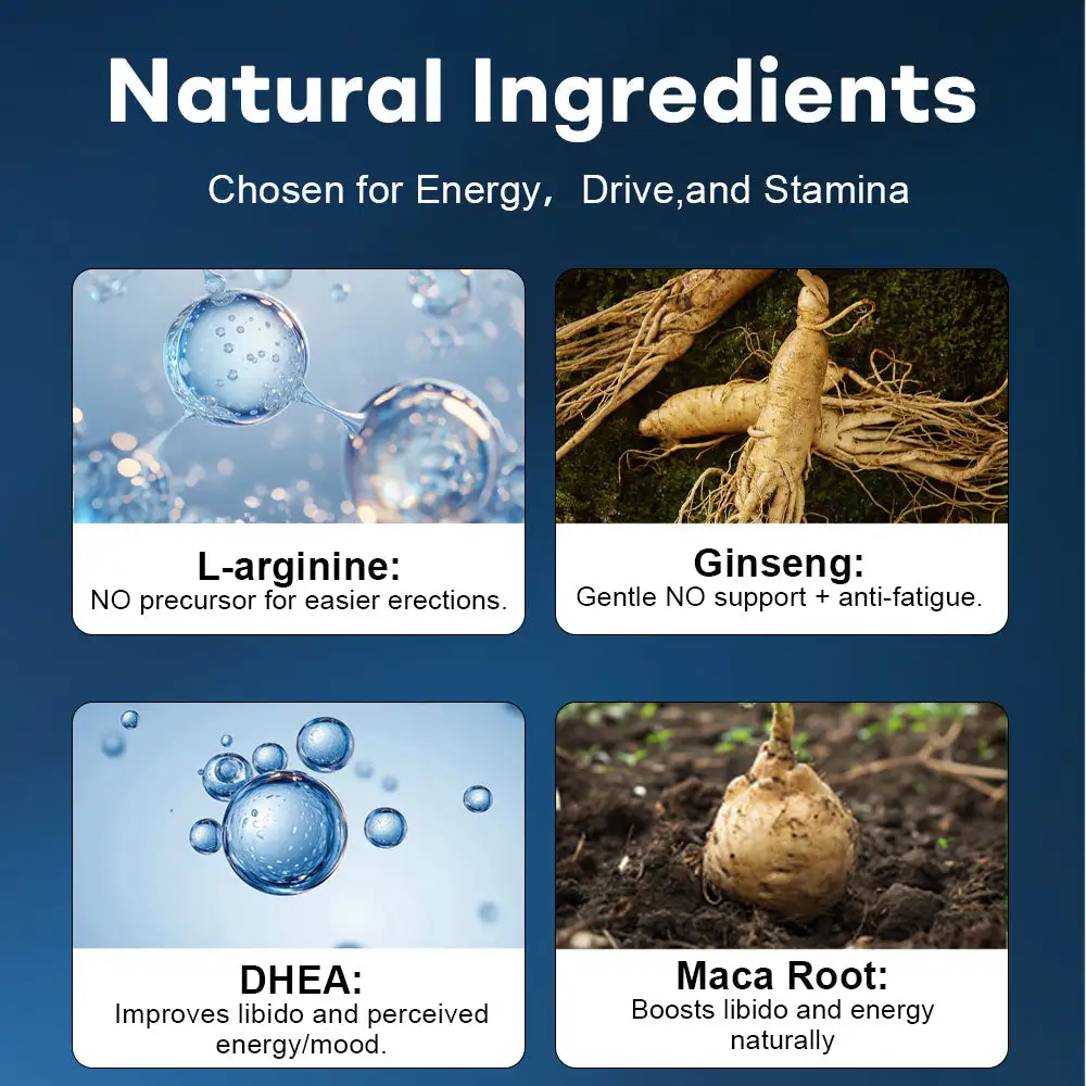 Natural ingredients that support your body’s wellness – not just performance, but total male vitality.