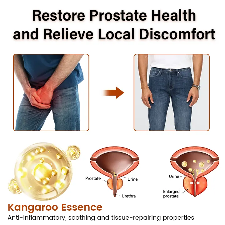 Restore Prostate Health and Relieve Local Discomfort: Kangaroo essence is rich in bioactive proteins and essential nutrients like zinc, known for their anti-inflammatory, soothing, and tissue-repairing properties. It effectively helps reduce prostate congestion, frequent urination, urgency, nighttime urination, and lower abdominal pressure—common symptoms of prostate imbalance.