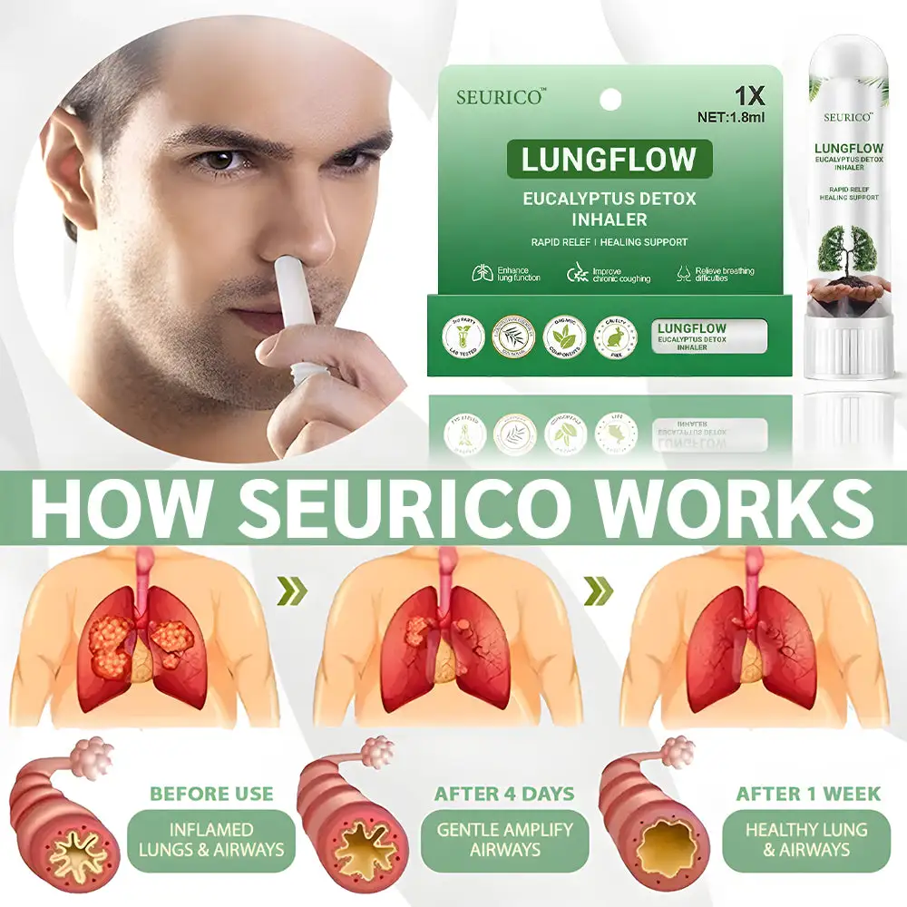 Seurico™ PureLung Herbal Refresh is a powerful herbal solution designed to quickly detoxify your lungs, improve your breathing, and promote overall respiratory health. It effectively eliminates toxins from smoking and pollution, restoring your lungs to their healthiest state.Backed by top pulmonologists, this inhaler delivers fast relief in 15 minutes, easing discomfort and improving lung function. With regular use, it repairs lung tissue and restores full lung health in just 4 weeks.