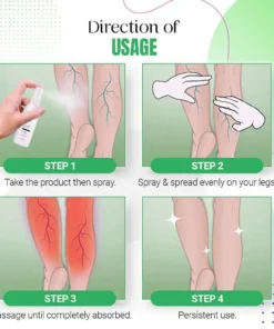 - Spray: Hold the bottle approximately 6 inches away from your skin and spray a thin, even layer onto the varicose veins or targeted areas.
