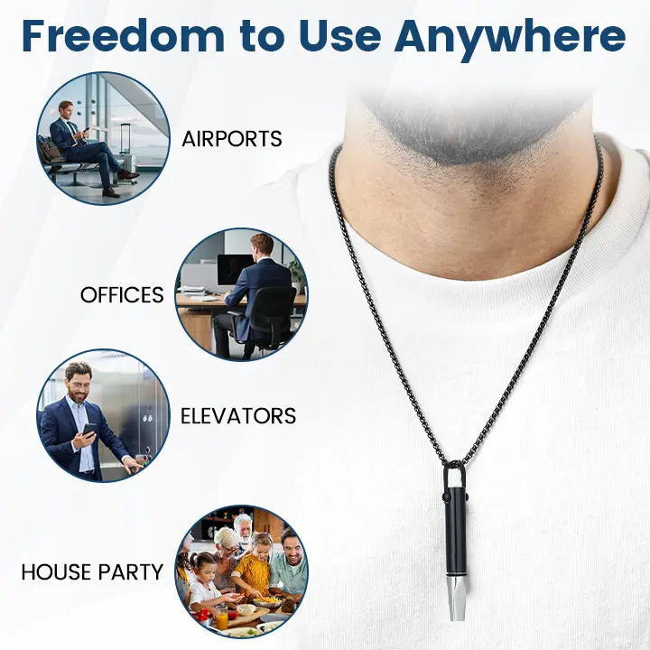 Discreet, Wearable Design: Looks like jewelry, works like therapy. Designed for those who want to quit quietly — with dignity. No vapor, no smoke, no strange looks. Just you, in control.