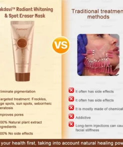 Zakdavi™ Radiant Whitening & Spot Eraser Mask is gentle enough for sensitive skin. Crafted with natural extracts and proven safe and effective through extensive testing, it offers a worry – free solution for those with delicate skin.