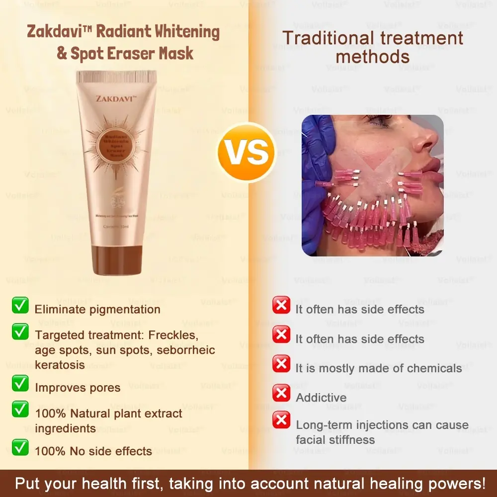 Winner of the 2024 International Beauty Innovation Excellence Award, Zakdavi™ Radiant Whitening & Spot Eraser Mask is the top choice for over 3,000 dermatologists and aestheticians. It effectively targets freckles, melasma, sunspots, seborrheic keratosis, and pores, with a formula that cleanses pores, brightens skin, and evens out the complexion.