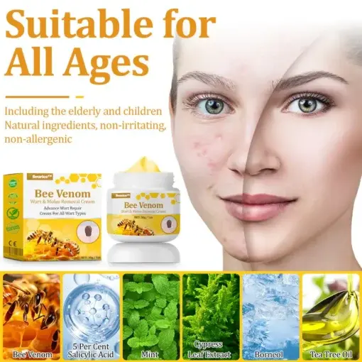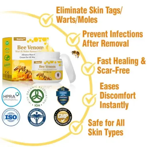 Bee venom not only removes skin tags and warts but also supports the healing process: