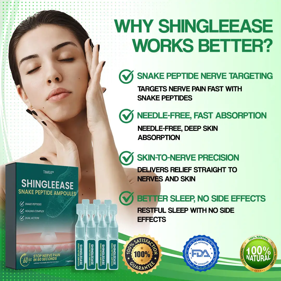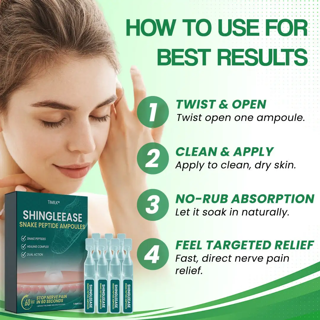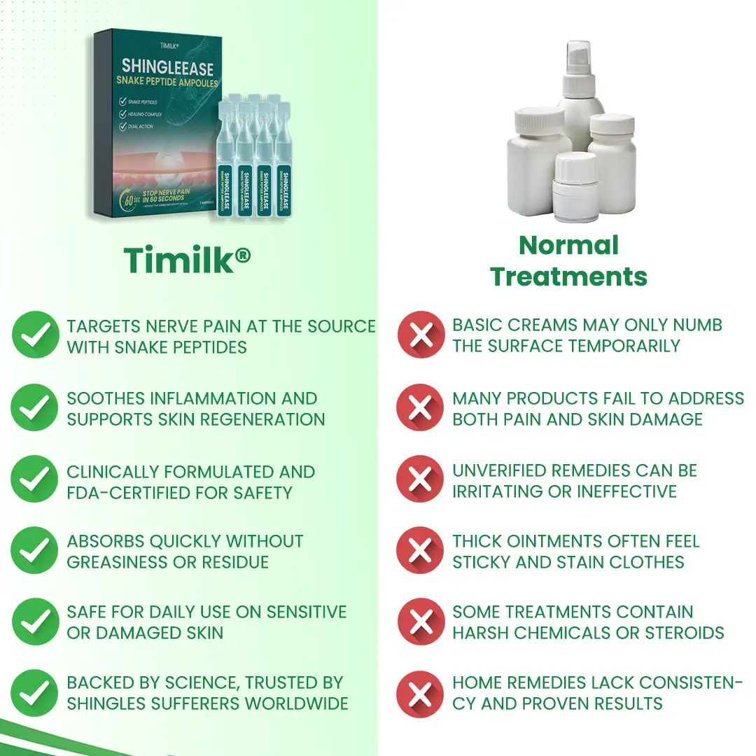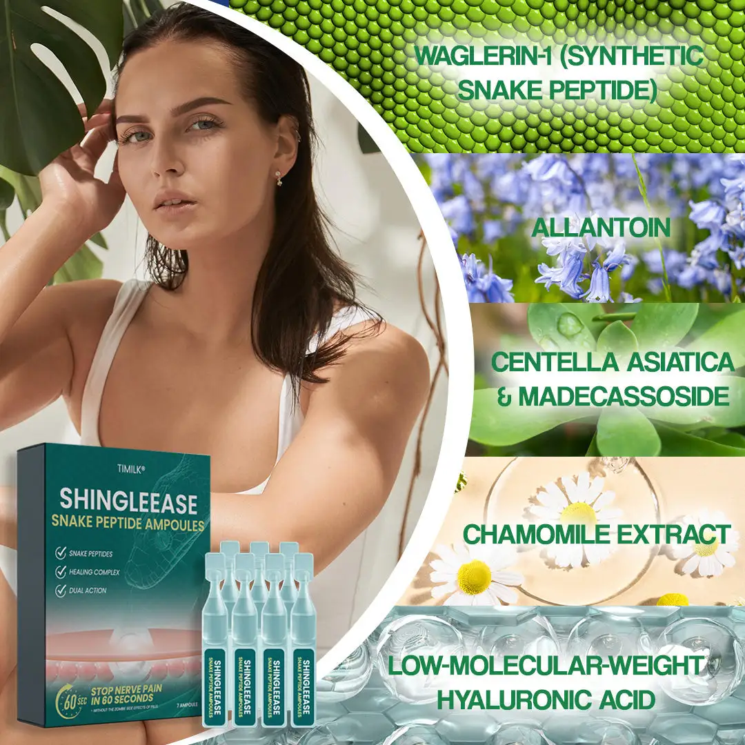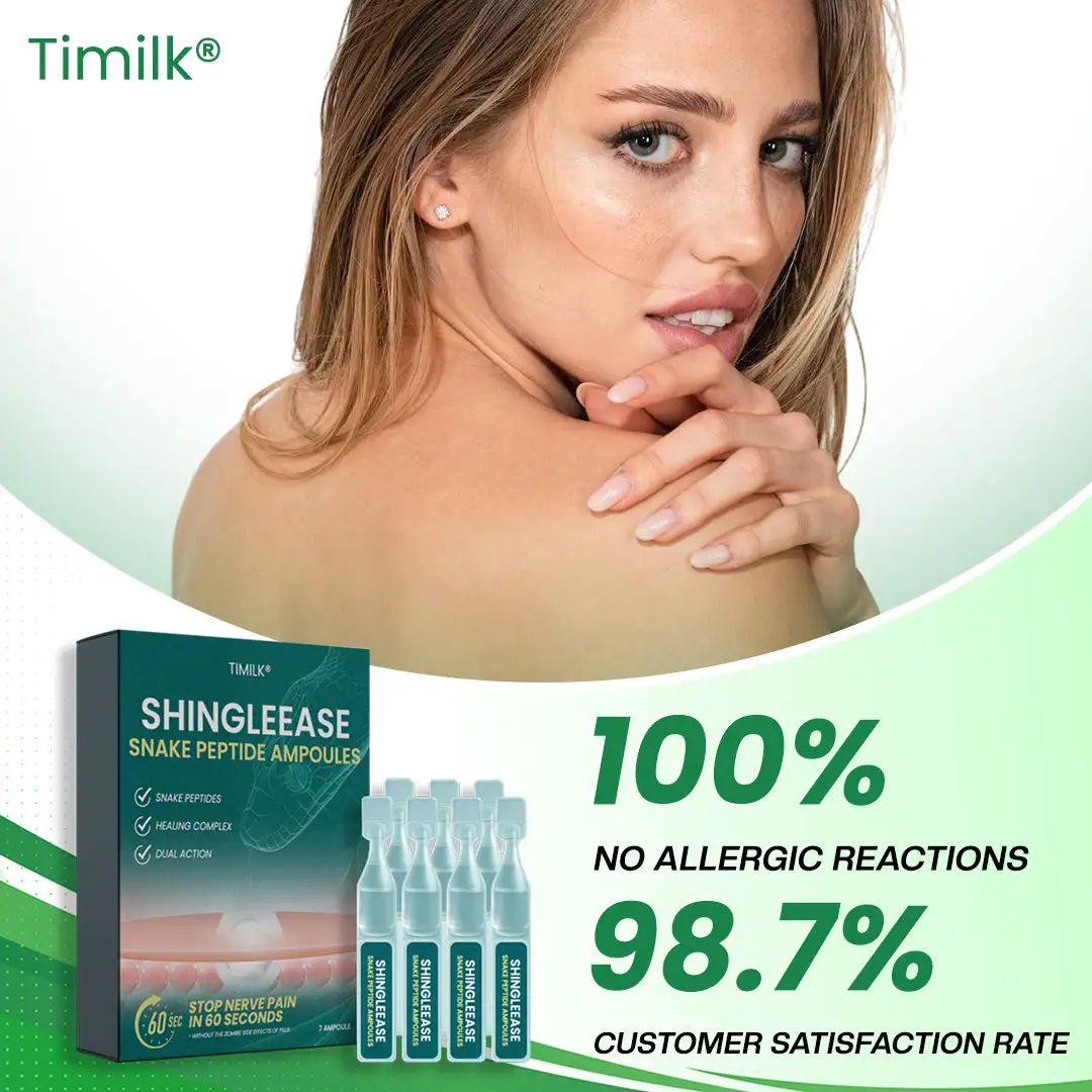 Timilk® ShingleEase Snake Peptide Ampoules are FDA-certified and clinically formulated to provide fast, targeted nerve pain relief on contact—powered by advanced snake peptide technology.