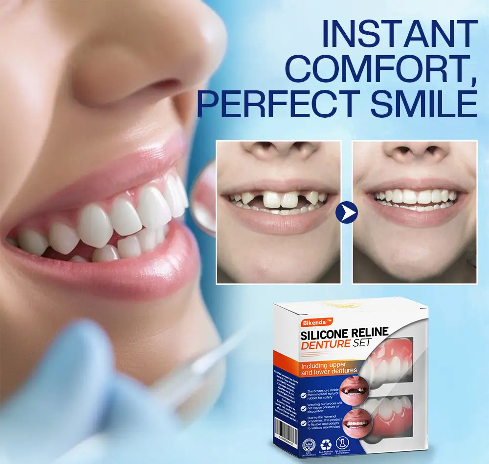 🌟 Instant Perfect Smile: Transform your smile instantly with the Bikenda™Silicone Reline Denture Set. Experience the satisfaction of achieving a flawless, customized fit right away. Our innovative denture set eliminates the discomfort of poorly fitting dentures, offering you a snug and natural feel that makes your dentures feel like a true part of your mouth. Say goodbye to sore spots and irritation as Bikenda™ Denture Set provides immediate relief, allowing you to enjoy your smile with newfound confidence and comfort. Enjoy a seamless transition to a better-fitting, more comfortable denture experience without delay.