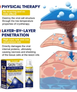Cvreoz® Skin Tag Cryo Treatment Spray uses advanced cryotherapy technology to precisely target the skin’s surface, rapidly lowering the local temperature to effectively destroy abnormal tissue cells responsible for warts, skin tags, and other skin issues, while promoting the regeneration of healthy skin.