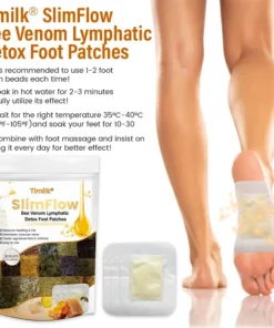 Timilk® SlimFlow Bee Venom Lymphatic Detox Foot Patches combine the powerful natural benefits of bee venom with the therapeutic effects of various herbal extracts to offer a revolutionary detox experience. Our unique formula is specially designed for the lymphatic system, using foot patches to promote transdermal absorption, ensuring the natural ingredients are gently and effectively delivered directly to the body. After use, the bee venom and other herbal ingredients quickly enter the bloodstream and lymphatic system, helping to expel toxins and waste from the body, reducing lymph fluid accumulation, and improving metabolic efficiency. Whether enhancing physical strength, improving health, or preventing related diseases, Timilk® SlimFlow Bee Venom Lymphatic Detox Foot Patches are the ideal choice for maintaining optimal health.