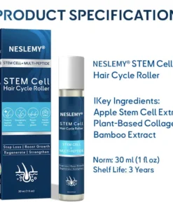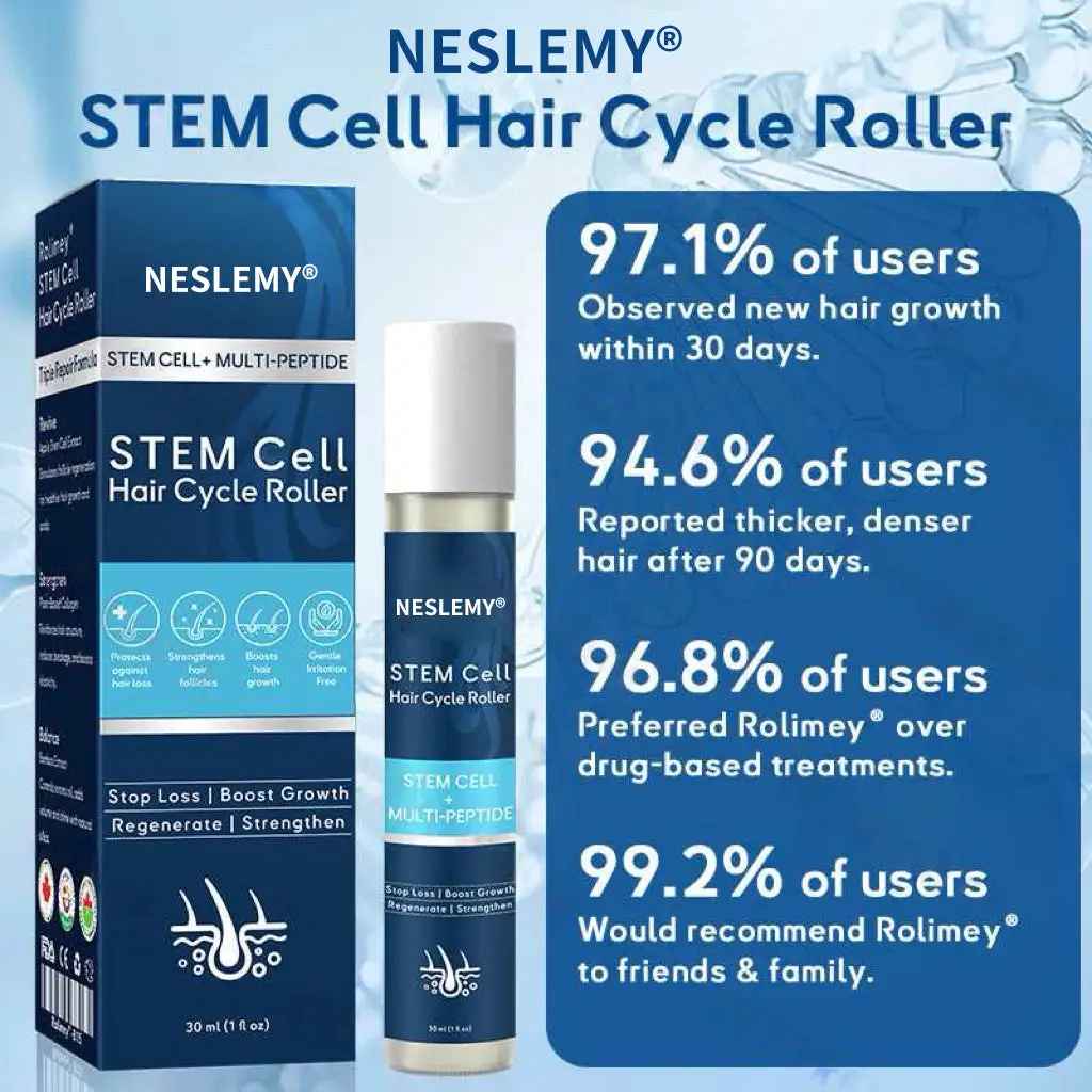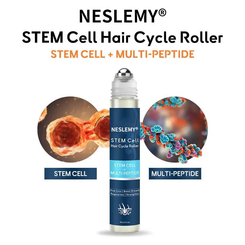 The use of the NESLEMY® STEM Cell Hair Cycle Roller effectively reactivates dormant follicles and helps reduce hair thinning caused by stress, hormones, aging, and environmental factors