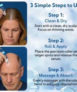 “The Stem Cell Hair Cycle Roller is designed with precision: plant-based stem cells and NASA multi-peptides penetrate directly into the scalp, waking up dormant follicles, restoring natural growth cycles, and strengthening roots. Clinical studies with over 80,000 participants have confirmed significant improvements in density, scalp health, and confidence—without the risks of drugs or surgery.”
