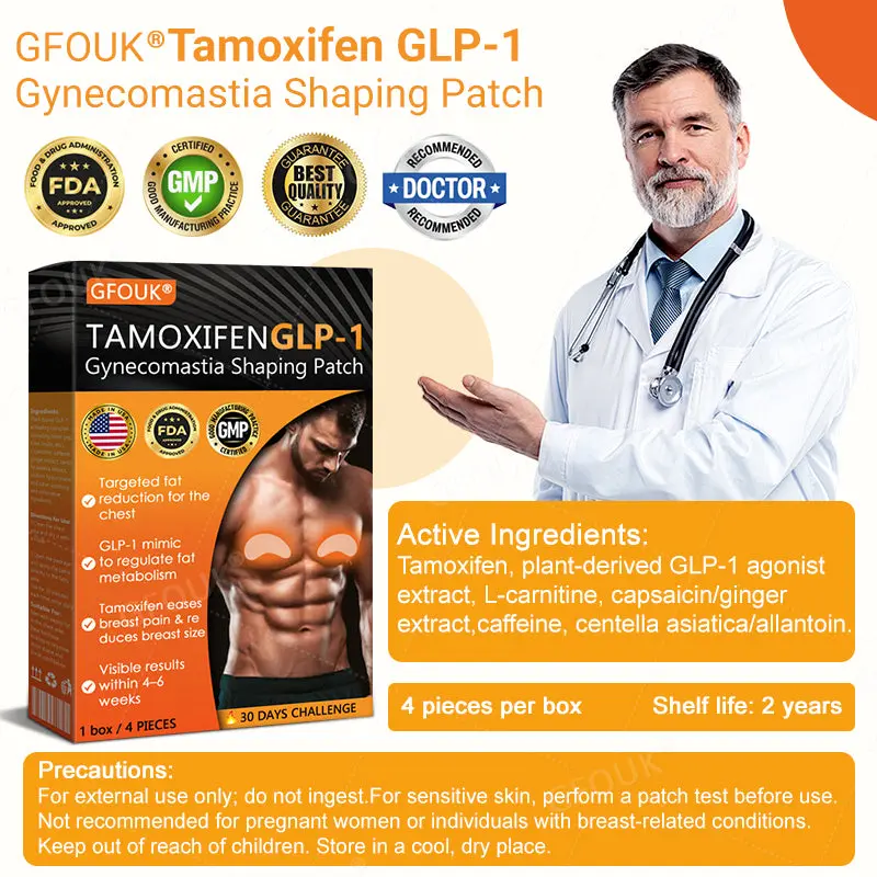 GFOUK® Tamoxifen GLP-1 Gynecomastia Shaping Patch is specially formulated for men dealing with fat-induced gynecomastia.