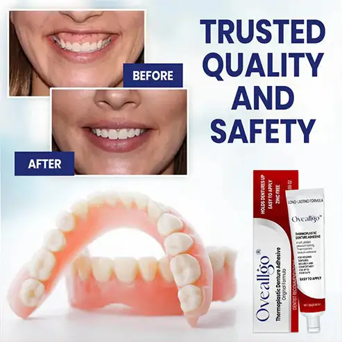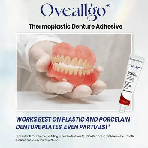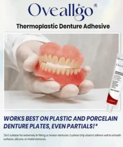 Say goodbye to denture discomfort with Oveallgo® Thermoplastic Denture Adhesive – the ultimate path to denture bliss!