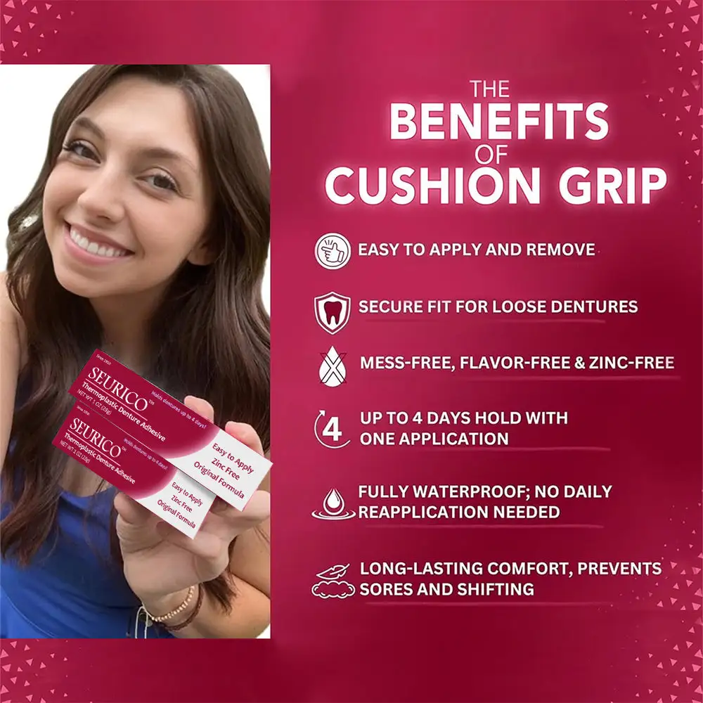 “Seurico™ has truly transformed my daily life! Now I can enjoy my meals and smile all day without denture pain.”–Lily Hall