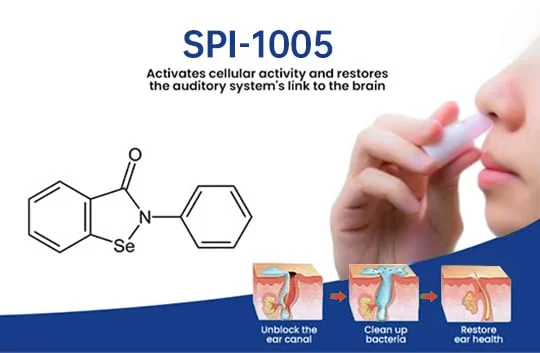 It is an organic compound with antioxidant and anti-inflammatory properties that improves hearing and tinnitus symptoms by reducing oxidative stress and inflammation in ear tissue.