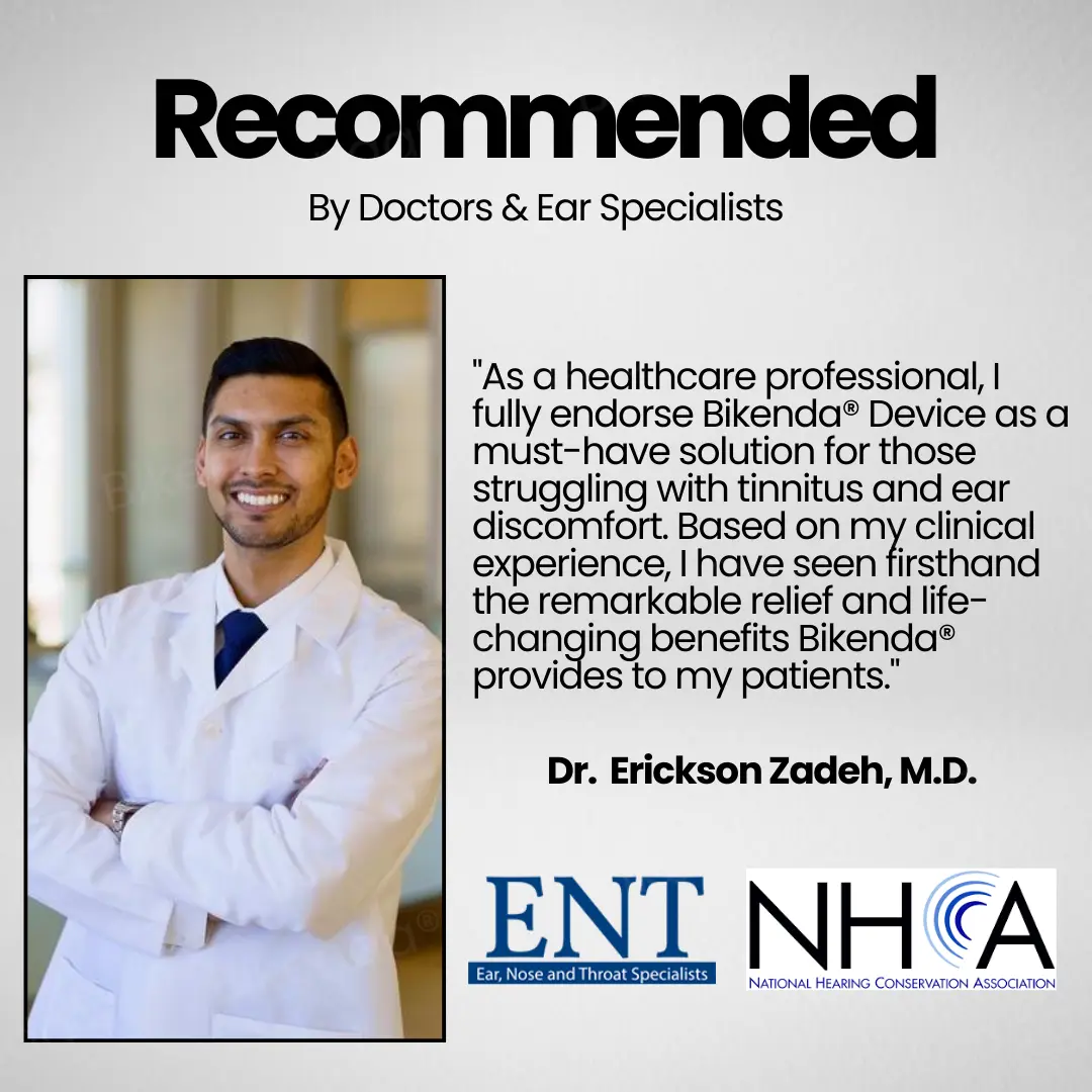 Medical experts now recommend Bikenda® as a breakthrough tinnitus solution, backed by science. Dr. Erickson Zadeh, a leading audiology specialist, praises its NeuroPulse Therapy, which calms overactive auditory nerve signals at the root of tinnitus. “Bikenda® is one of the most effective, non-invasive solutions I’ve seen in my career,” he states. With strong clinical results and expert endorsements, Bikenda® is the trusted choice for those seeking fast, lasting relief from tinnitus.