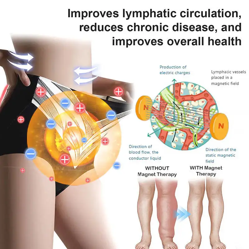 Lymphedema. caused by lymphatic fluid buildup. can be effectively managed with FIR and negative ions. Neslemy™ Titanium Fiber Self-heating Tourmaline Shaping Shorts enhance lymphatic drainage and circulation. reducing swelling within two weeks. FIR improves lymphatic function and reduces inflammation. while negative ions aid detoxification. clearing congestion and preventing complications like fibrosis and skin infections. This provides a holistic solution for lymphedema management.