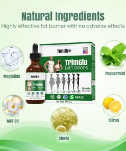 Timilk® TrimGlu Diet Drops – Formulated by a team of human science specialists from Harvard University’s Faculty of Medicine, backed by 20 years of expertise and groundbreaking research. This innovative formula enhances Simethicone with a unique blend of plant-based ingredients. Rigorously tested to meet the highest safety and quality standards, it is recognized by top U.S. healthcare professionals for its advanced formulation and proven effectiveness.