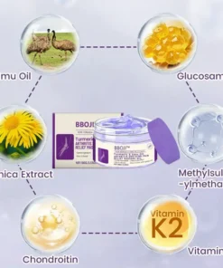 ✅Relieves arthritis pain and eliminates joint inflammation. ✅Reduces cysts and edema, promoting healthier joints. ✅ Repairs and regenerates joint tissue, improving elasticity and mobility. ✅ Enhances blood circulation for faster recovery. ✅ Safe for daily use, with no side effects. ✅Works day and night, delivering effective relief from the first application. ✅ Clinically proven by medical research centers. ✅ FDA-approved and developed by BBOJI™. ✅ Free from harmful ingredients and cruelty-free. ✅Recommended by orthopedic experts for long-term joint health.
