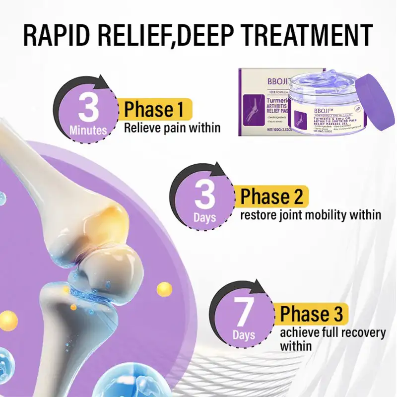 BBOJI™ Turmeric & Emu Oil Arthritis Pain Relief Massage Gel provides fast, targeted relief—soothing pain in just 3 minutes! 💨✅ Restores joint mobility in 3 days✅ Supports full arthritis recovery in 7 days