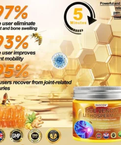 RAINDEW® BEE VENOM LITHOSPERMUM Pain-Relief Bone Healing Cream contains six proven, powerful ingredients that have been used to effectively treat arthritis and bone-related conditions in millions of people around the world.
