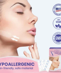 The Luhaka™ V-Face Lifting Adhesive Tape offers an instant solution for a face-lifting effect, eliminating the need for surgical procedures. Our product is designed to adhere gently to the sides of your face, lifting and pulling your skin upwards and backwards, creating a more V-shaped appearance, all while being gentle on the skin.