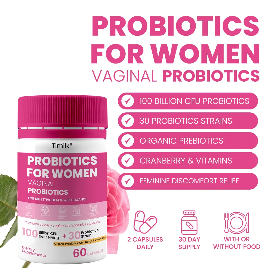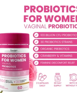 Discover the natural way to maintain vaginal health, pH balance, and comfort. Timilk® Vaginal Probiotics for Women is expertly formulated with clinically studied 100 Billion CFU, 30 Probiotic Strains and botanical extracts to nurture your microbiome and protect against imbalance, odor, and irritation — from the inside out.