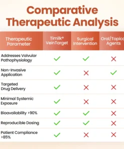 Timilk® VeinTarget represents the first commercially available transdermal phytotherapy system specifically designed to address venous valvular insufficiency through localized botanical intervention. Unlike systemic treatments that dilute active compounds throughout the circulatory system or topical applications that cannot penetrate the dermal barrier, our microneedle delivery system ensures concentrated therapeutic compounds reach the target tissue with minimal systemic exposure.