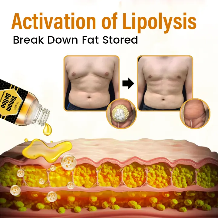 Timilk® VenomDefine Bee Venom Oil contains a powerful blend of active ingredients, with one of the core components being a natural bee venom extract. Its key compound, Melittin, activates the body’s lipolysis mechanism, penetrating deep into the subcutaneous fat layer to target localized fat deposits. This helps break down excess fat cells, effectively reducing chest fat accumulation and glandular enlargement in men.