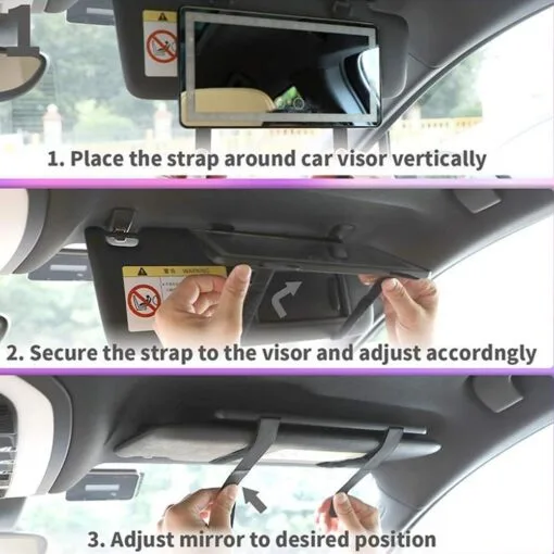 - Install in seconds: To attach this visor vanity mirror, simply place the straps around the car visor. Adjust the straps and attach the visor to a stable place. Once connected, move the viewfinder to your preferred position.