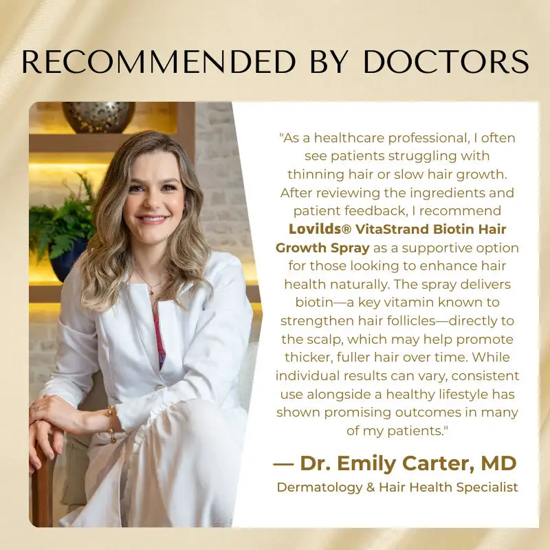 “Lovilds® VitaStrand Spray has been a total game-changer! After a serious illness last fall, I experienced rapid hair thinning and bald spots. I dreaded touching my hair. But after seeing glowing reviews, I gave it a shot—and wow! My hair is growing back thicker, fuller, and stronger. I even enjoy brushing my hair again, and the scent is wonderful. I’ll definitely keep using it!”