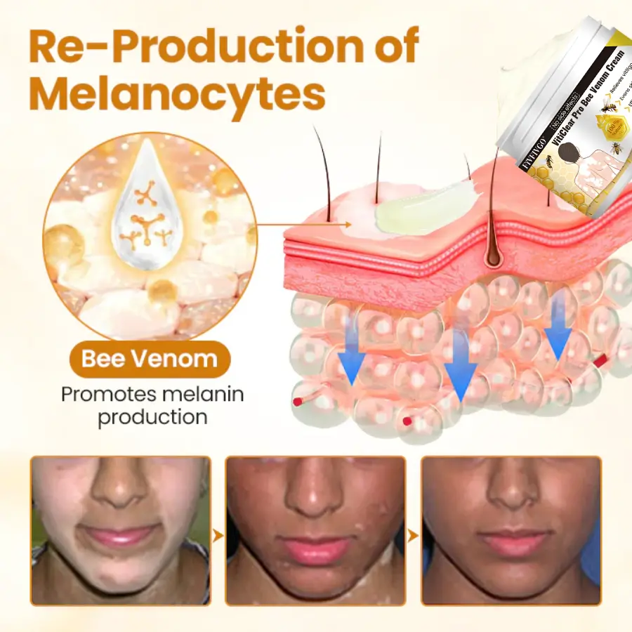 Fivfivgo® VitiClear Pro Bee Venom Cream is enriched with high-activity PLA2 to help suppress this abnormal immune response, protect melanocytes, and gradually restore natural skin tone.