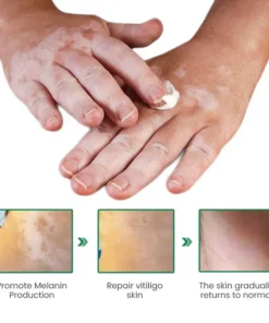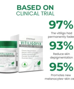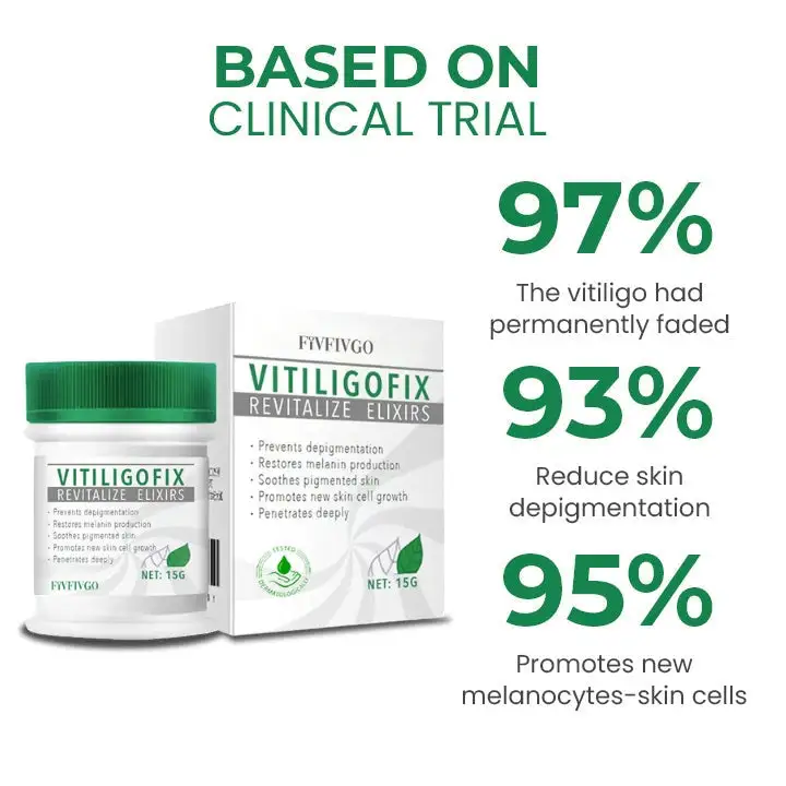 The Fivfivgo™ VitiligoFix Revitalize Elixir operates through a multifaceted approach to address vitiligo symptoms. By incorporating anti-oxidant and anti-radical agents, it aids in rebalancing the metabolism of skin cells, facilitating the restoration of melanocytes responsible for producing skin pigmentation. Simultaneously, the cream offers soothing properties that alleviate discomfort and irritation associated with vitiligo while nourishing and hydrating the skin to enhance overall skin health. Copyright possessed by Fivfivgo™ Group.