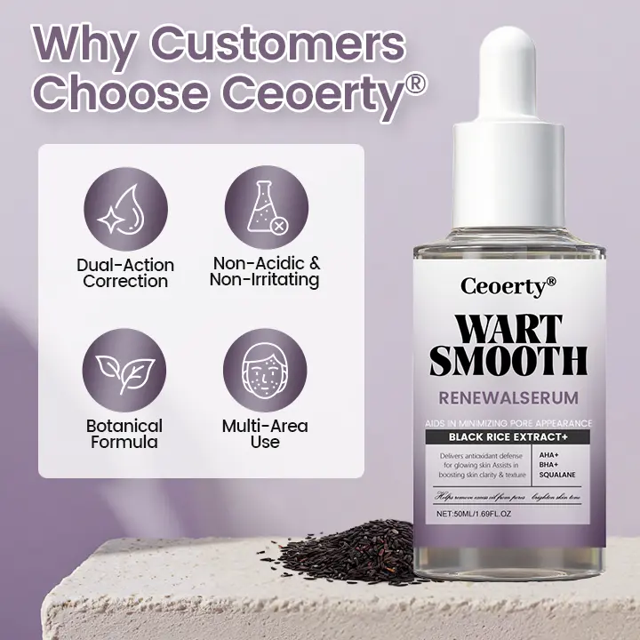 That’s why we created Ceoerty® WartSmooth Renewal Serum — a lightweight, fast-absorbing botanical serum designed to gradually soften raised skin irregularities, loosen stubborn keratin buildup, and restore a smoother, clearer-looking surface — without acids, stinging, peeling, or irritation.